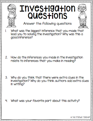 My friends, teaching students to make inferences is one of the hardest concepts out there! Can I get an Amen?! Students are trained to see what is right in front of them, so when they have to take that and read between the lines it is difficult! It is pulling hair out difficult! This is why I started our unit off with an investigation! This activity taught them what inferencing was and stuck it into their brains forever. It has been months since our investigation and they still talk about it! All.The.Time.
