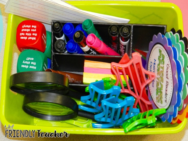 The reading tool box is a box that goes around the room with me and is full of FUN supplies that you can use while reading. The best part is you can take it anywhere in the classroom, you can just grab things quickly, and it is all in one place! I will share with you what is in my box, but you truly can put ANYTHING that works for you in your box!