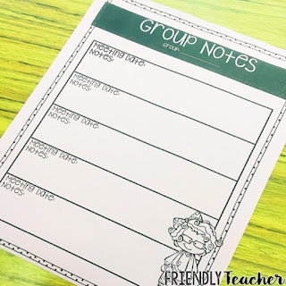 I like to keep group note sheets in each folder, as well. I take notes on students that have mastered skills or need help. I also have a quick running record area if I need to take notes on a student!