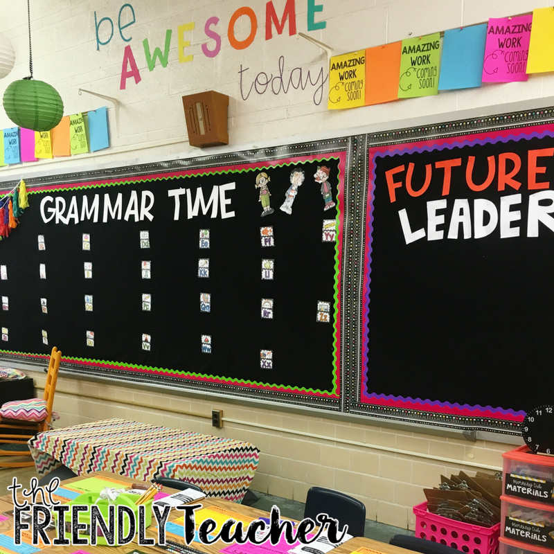 For my word wall I will color code the words based on part of speech. You can find the grammar wall here! For my future leaders board, the students will take a picture on the first day that states what they want to be when they grow up. I will put that picture on this wall to display that they are a future leader! My Be Awesome Today and all my letters are using Amy Grosbeak fonts and are cut out using my circuit which you can find here! It is so worth every penny!